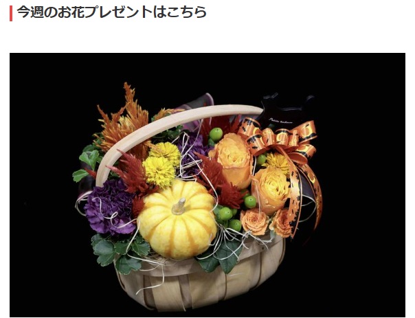 フジテレビで放送の「めざましテレビ」から、火曜日限定の「今日のお花プレゼントキャンペーン」が開催されています♪ 10月7日の放送では「かぼちゃを使ったアレンジメン... -
