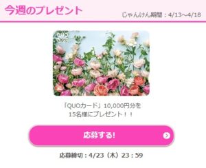 応募方法はWEB応募で、一部応募には番組中で発表されるキーワードが必要で、TVerなどの見逃し放送もありますが、キーワード部分はカットされているのでリアルタイム視聴か録画でないと応募しづらいので要注意♪